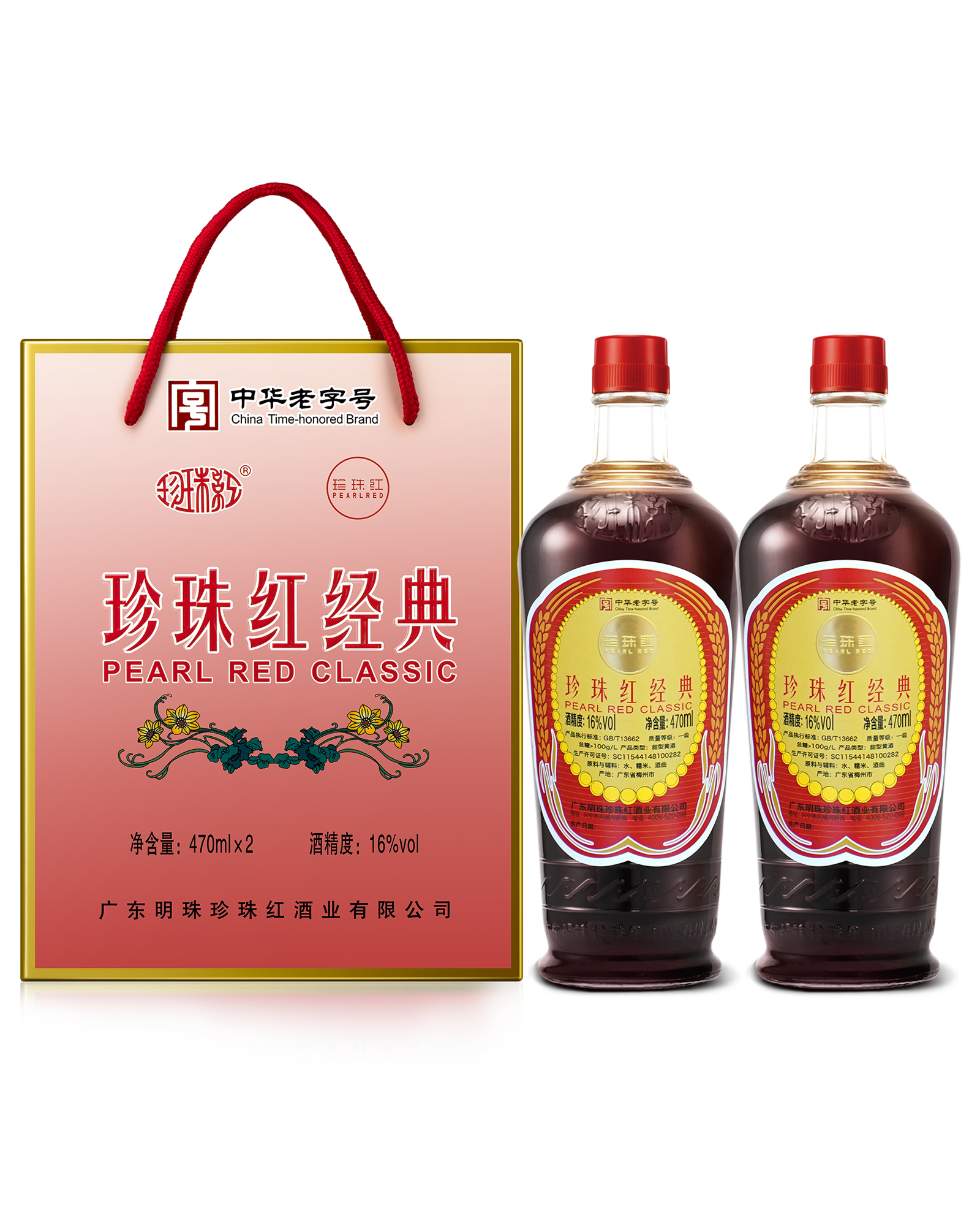 Pearl Red Classic Rice Wine Gift Pack Traditional Hakka Craft yellow wine 16%vol 470ml*2珍珠红经典礼盒装